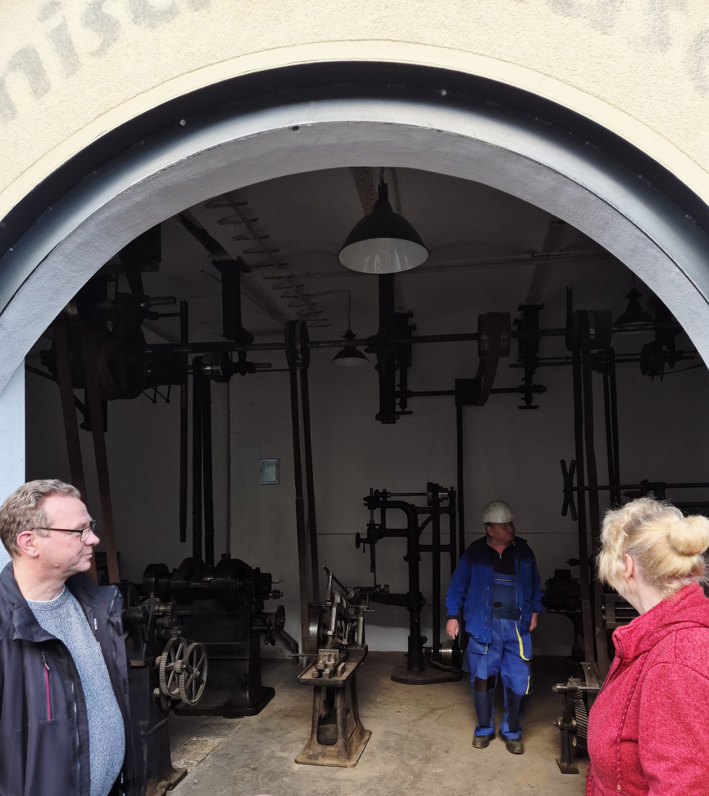Für mich war es schon fast wie eine Führung durch eine Burg aus der Ritterzeit, so groß ist der Unterschied zu heutigen, immer digitaler werdenden Welt. Was mich am meisten beeindruckte waren richtig große (über 2 m) Bohr- oder andere Metallbearbeitungsmaschinen, welche ganz ohne Strom (noch immer) funktionieren, nur durch Arm- oder Fusskraft (z.T. wie bei einer Nähmaschine) und durch ausgeklügelte Technik zur Übersetzung der Kräfte.